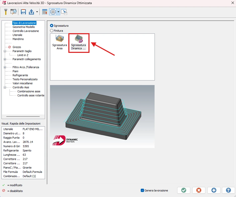 Grande libreria di percorsi utensile ottimizzati (ad es. Dynamic Motion)