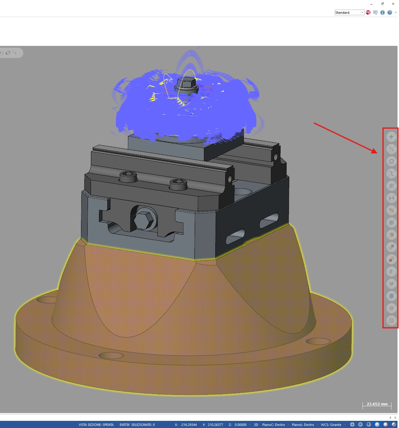 Offre viste tridimensionali, simulazione del materiale asportato e controllo collisioni tra utensile, portautensile, staffaggi e macchina.